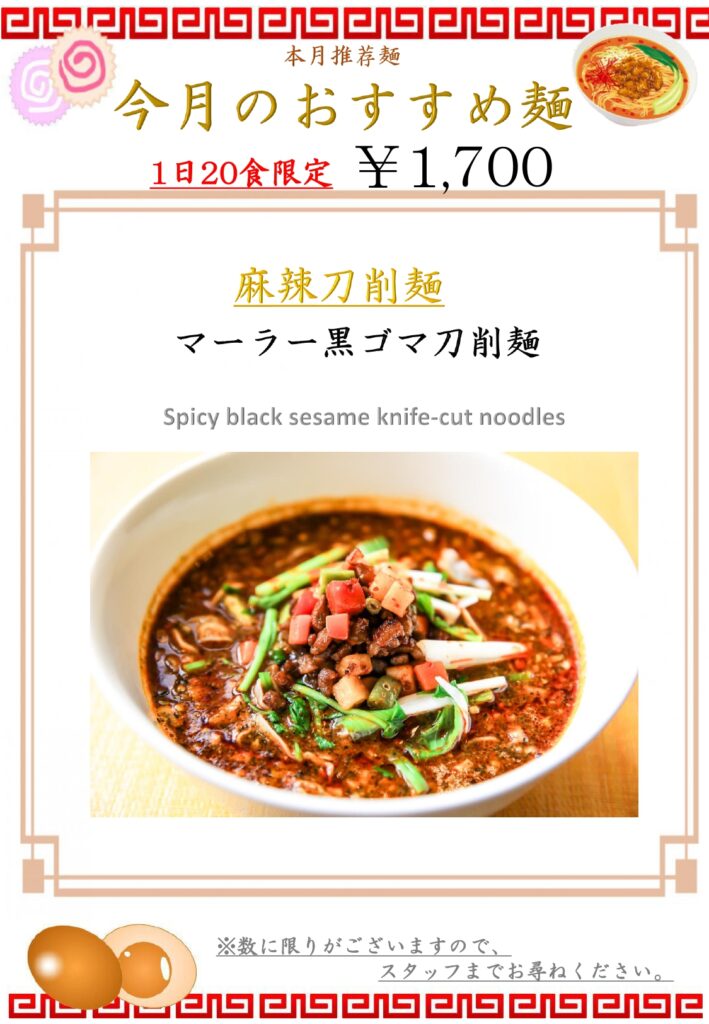 3月のおすすめ麺(平日ランチタイム限定)¥1,700 (税込) 限定各20食