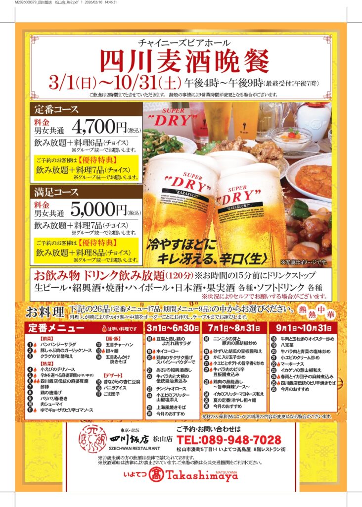 四川麦酒晩餐のご案内